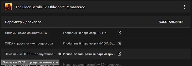 Oblivion Remastered использует устаревшую модель DLSS 3, которая местами артефачит. Обновить версию технологии можно вручную множеством способов, но самый простой из них – через приложение Nvidia.