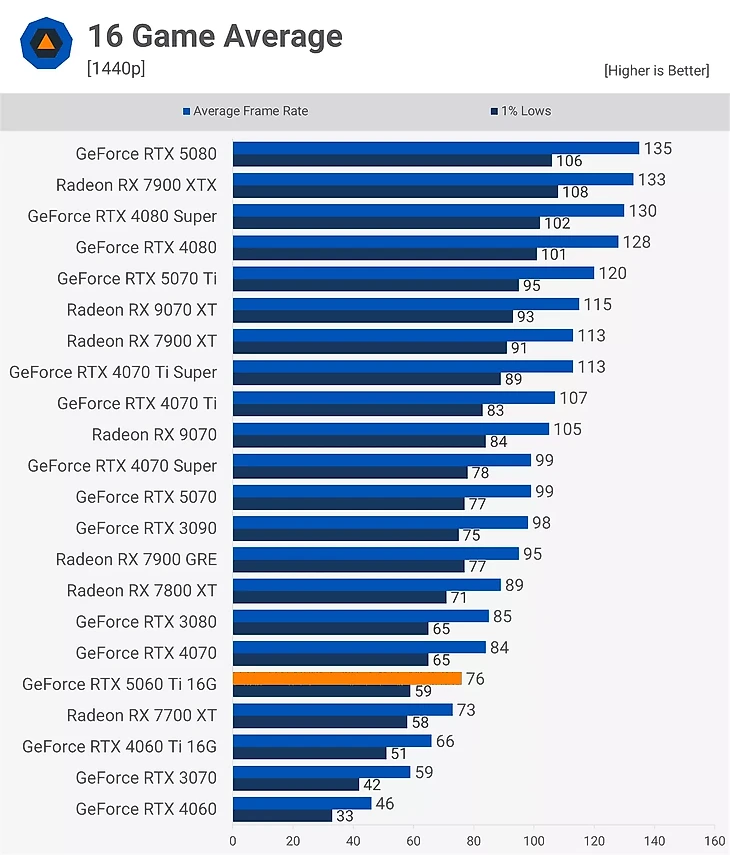 Производительность GeForce RTX 5060 Ti 16 ГБ