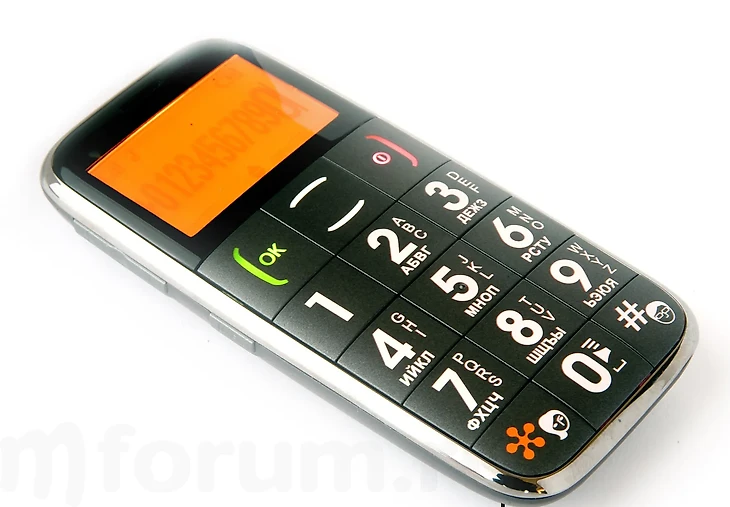 Очень простое по характеристикам устройство: камера на 0,3 МП, аккумулятор на 1700 мАч. Его плюсы: большие клавиши с подсветкой, громкий динамик, кнопка SOS для экстренного вызова скорой и док-станция, в которой телефон не потеряется.