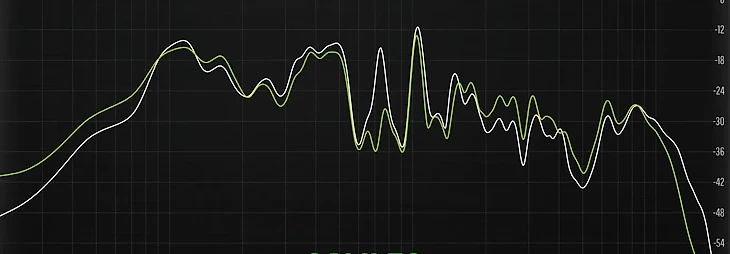 Белая линия – оригинальный файл, зеленая – то, как его воспроизводят наушники.