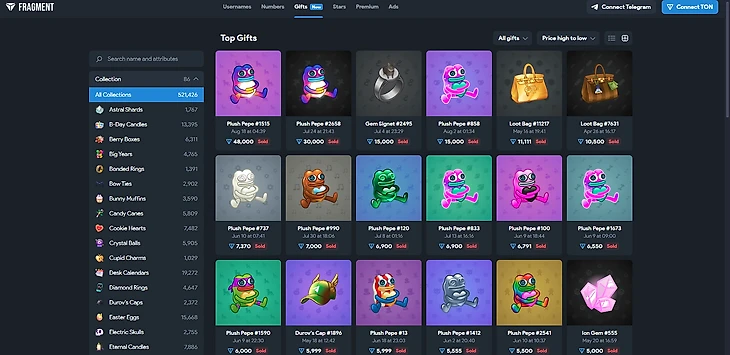 Официальные площадки (Fragment – от телеграма, GetGems – крупнейший TON маркетплейс).