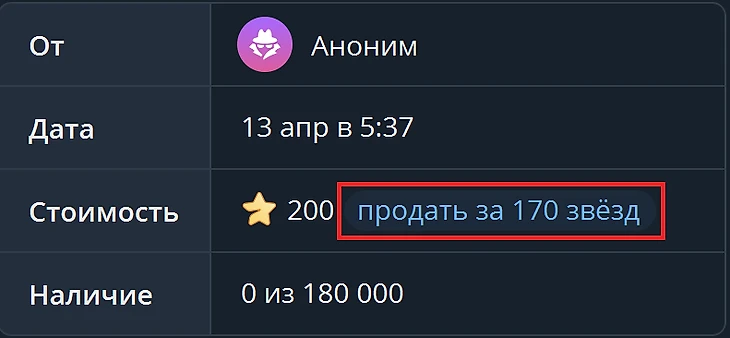 После конвертации в NFT стоимость подарка определяется рыночным спросом, и может доходить до нескольких тысяч долларов.