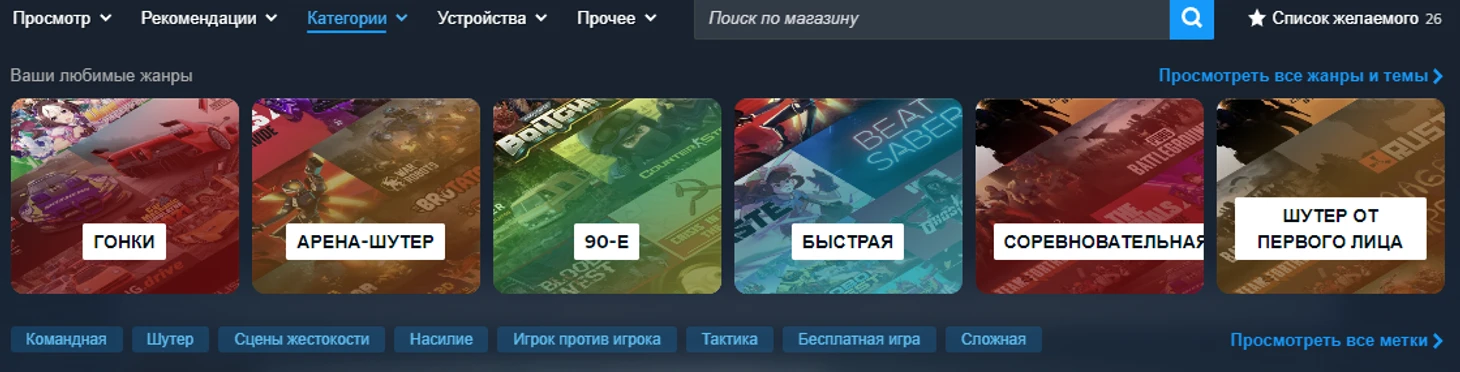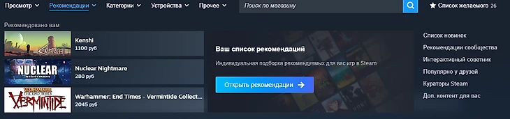 Раздел «Рекомендации» стал лучше. Теперь здесь собраны рекомендации, основанные на вашем времени в играх, истории покупок, любимых жанрах и играх, в которые играют ваши друзья — все в одном месте.