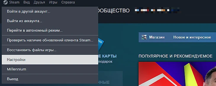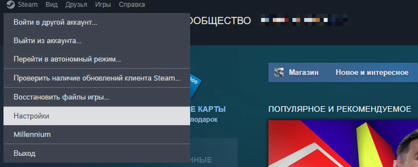 В левом верхнем углу кликните на выпадающее меню Steam.