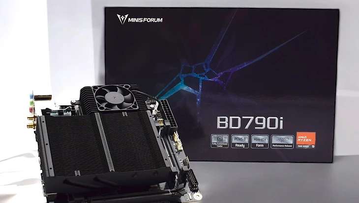 Компактная Mini-ITX плата с распаянным Ryzen 9 7945HX3D. В комплекте – DDR5 память и охлаждение.