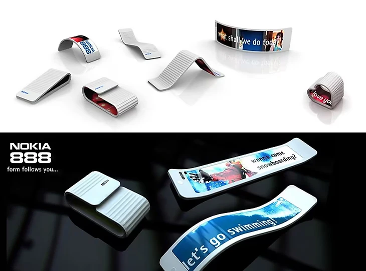Nokia опережала время в концептах: телефоны, которые гнутся, меняют форму, передают тактильные ощущения и носятся на запястье. Дизайнеры смело смотрели в будущее, но парадоксальным образом смелость в прогнозировании технологий соседствовала с отставанием от рынка.