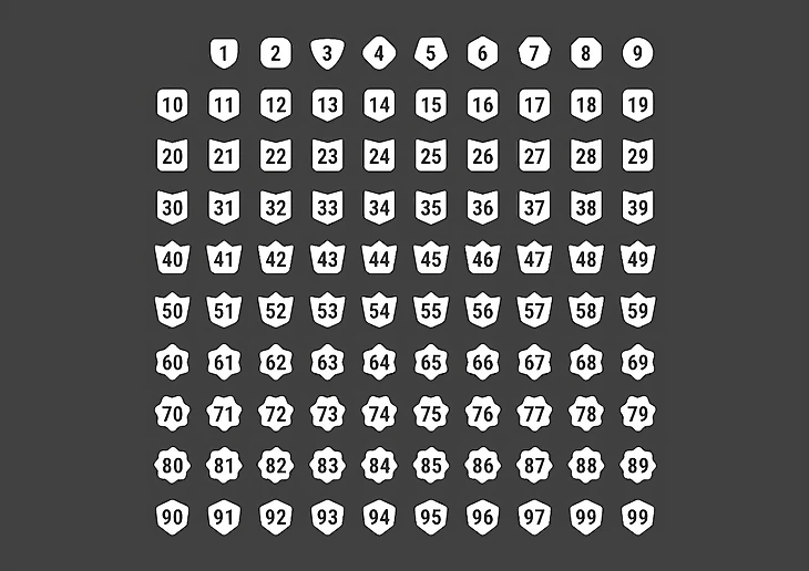 Значки всех возможных уровней.