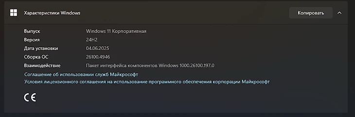 Для установки и корректной работы приложения требуется наличие операционной системы Windows 10 или Windows 11 версии 22H2 или более поздней. Проверить свою версию Windows можно в меню «Параметры».