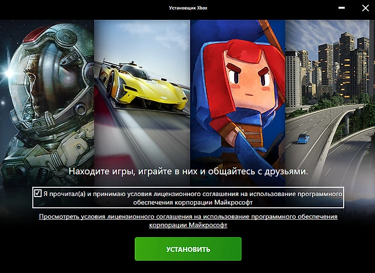 Если вы использовали сайт Xbox, вам потребуется запустить установщик XboxInstaller.exe. В открывшемся окне установщика необходимо поставить галочку напротив лицензионного соглашения и нажать кнопку «Установить».