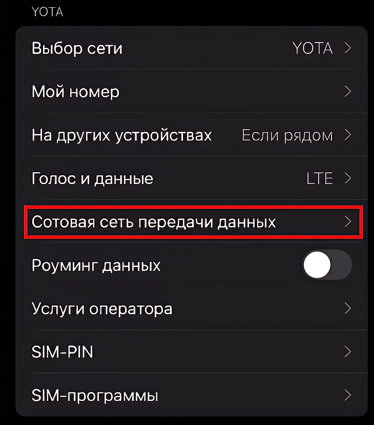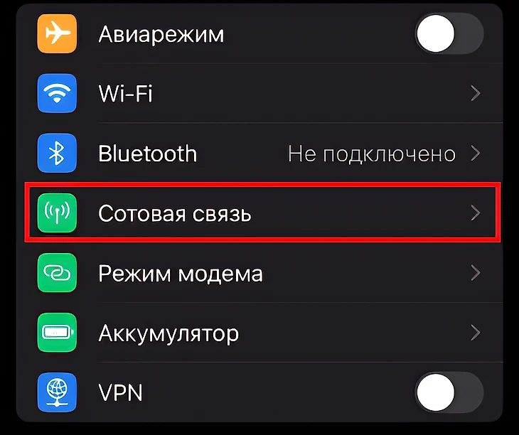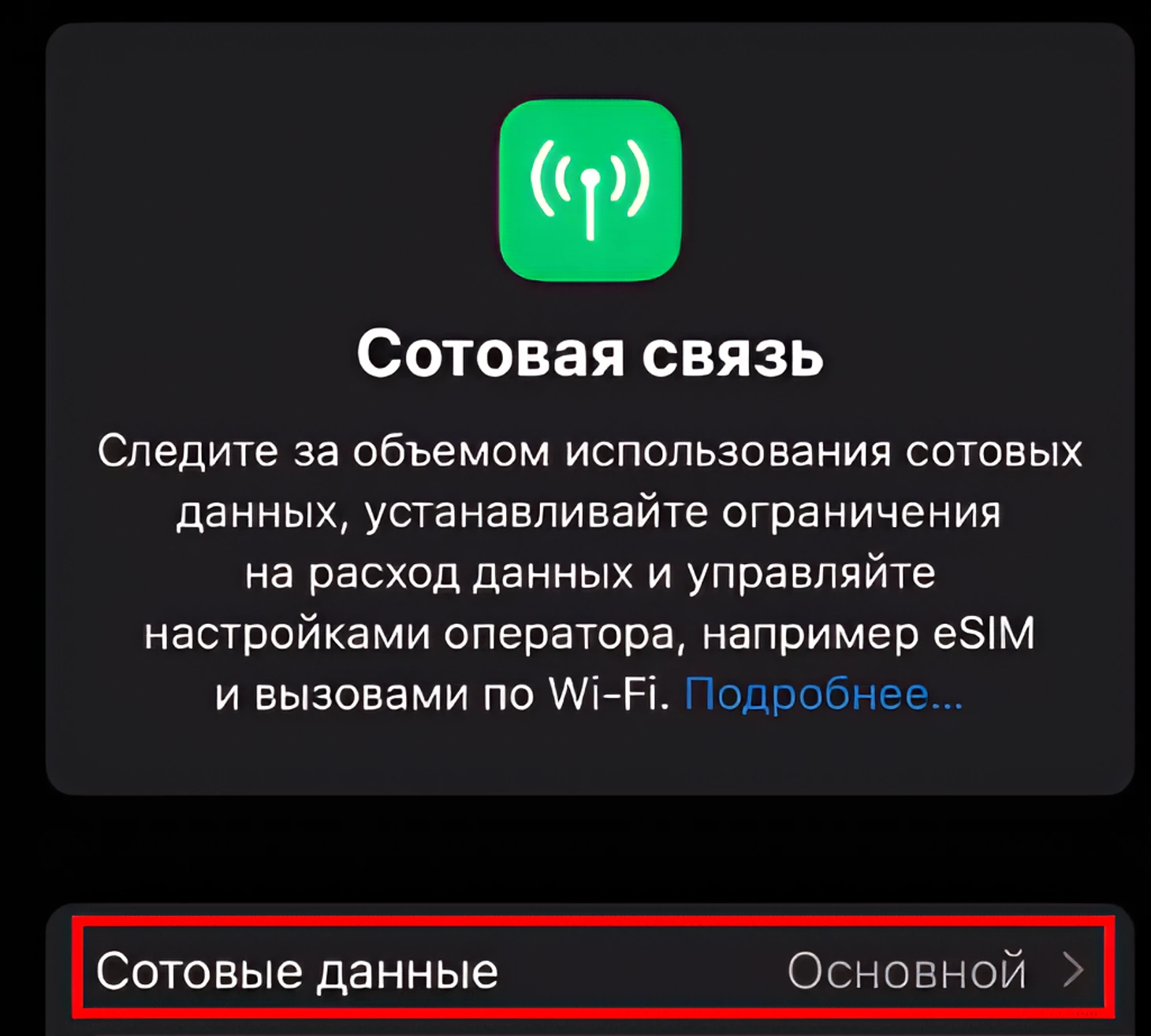 Откройте «Настройки» и перейдите в раздел «Сотовая связь».