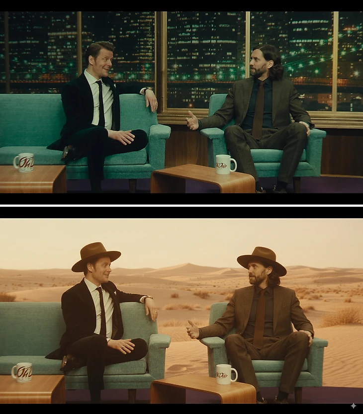 Gemini 2.5 Flash Image отлично справляется с заменой фона и освещения.
