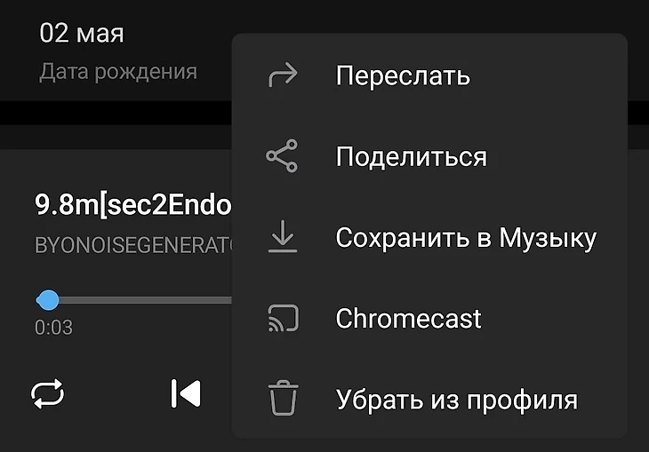 Найдите в чате тот трек, который вы добавляли в профиль.