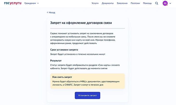 Чтобы установить запрет на выпуск SIM-карт, необязательно делать это через Госуслуги.