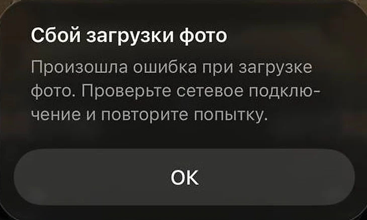 Вместо изображений скачанных из iCloud галерея отображает сообщение «Сбой загрузки фото».