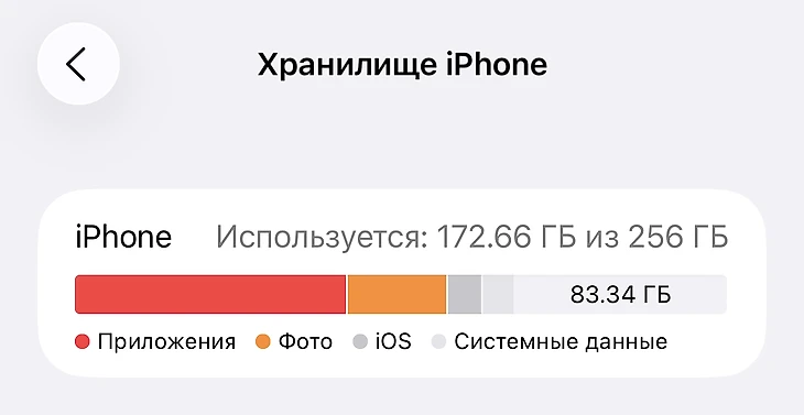 Перейдите в «Настройки», «Основные» и откройте «Хранилище iPhone». Убедитесь, что у вас есть 20 ГБ свободного места – их точно хватит с запасом. Если памяти недостаточно, удалите ненужные приложения, фото, видео или очистите кэш.
