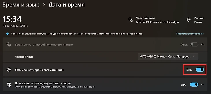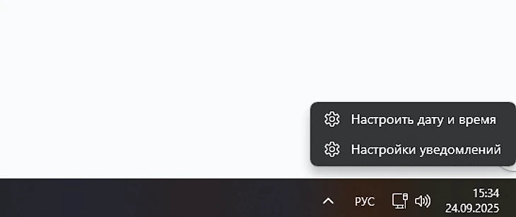 Щелкните правой кнопкой мыши по часам в правом нижнем углу экрана и выберите «Настроить дату и время».