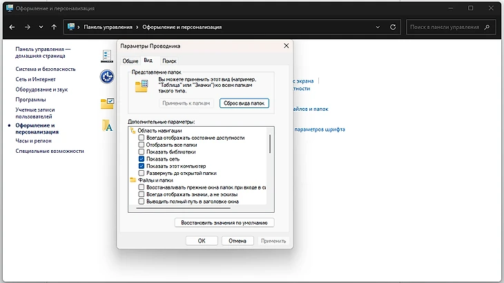Перейдите в раздел «Оформление и персонализация» и выберите «Параметры Проводника».