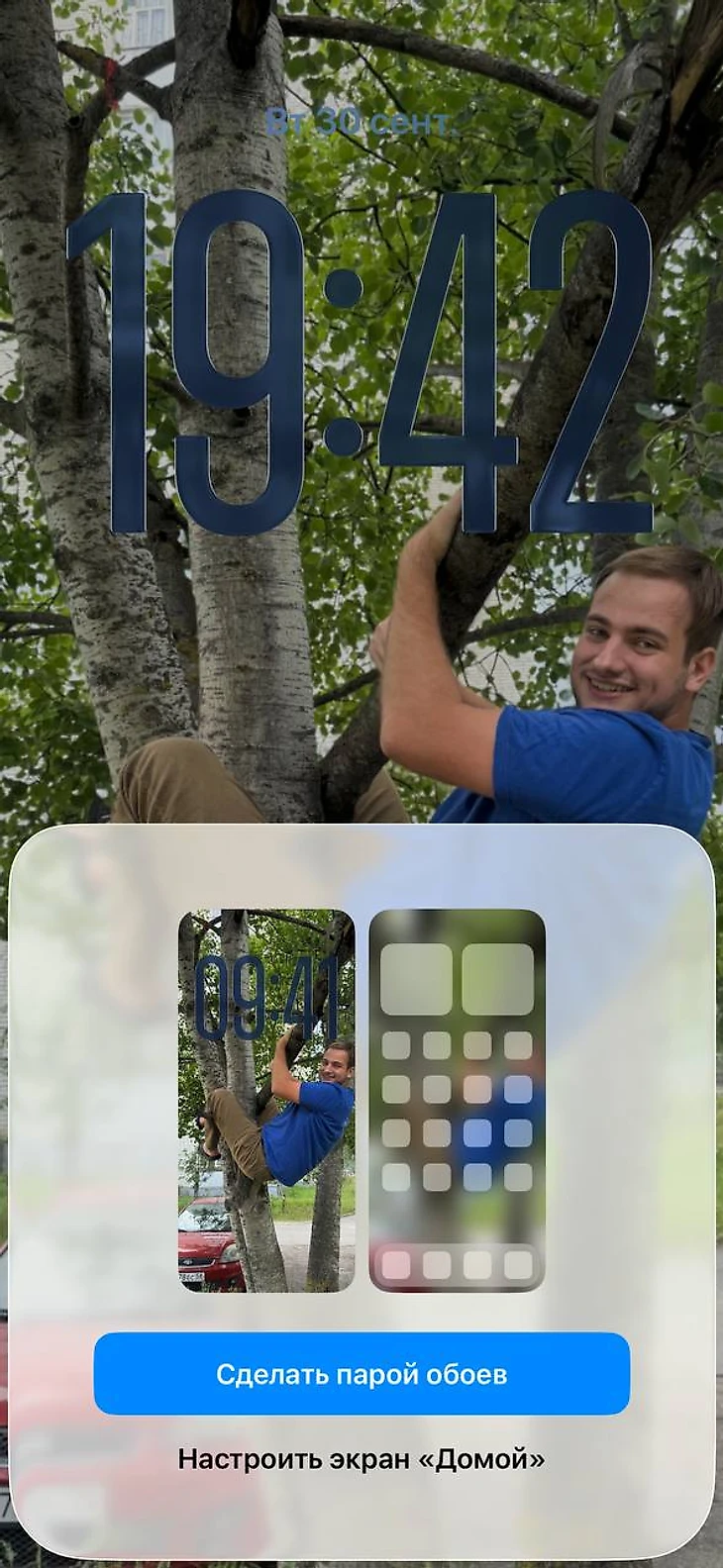 После этого вы можете вернуть часы к первоначальному размеру — виджеты останутся в нижней части экрана. Теперь можно настроить остальные параметры и нажать «Сделать парой обоев».