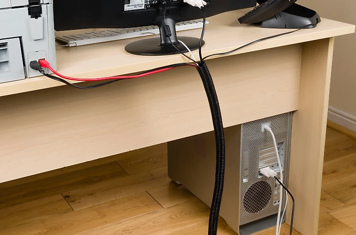 Идеальный порядок должен быть не только внутри, но и снаружи. Провода от монитора, колонок, клавиатуры и зарядных устройств на столе могут создать не меньший хаос. Используйте специальные приспособления: спиральные трубки и кабель-каналы, чтобы собрать несколько проводов в один аккуратный жгут. Закрепляйте провода под столом с помощью специальных клипс или липучек – это освободит место, избавит от путаницы и сделает ваше рабочее место визуально чище.