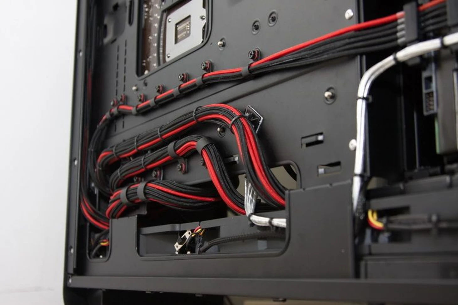 По максимуму используйте свободное пространство корпуса, которое не видно снаружи – например, заднюю стенку и отсек для блока питания. Если можете провести кабель там, то проводите его там. Основное правило: с лицевой стороны корпуса должно проходить минимальное количество проводов.