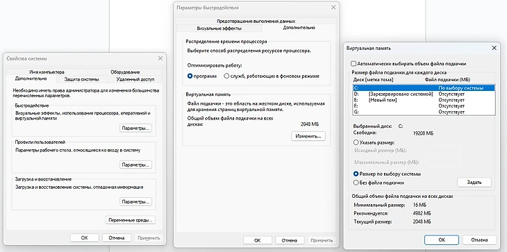 Более универсальный способ увеличить виртуальную память – настроить файл подкачки (виртуальную память) на жестком диске компьютера. Процесс настройки файла подкачки: