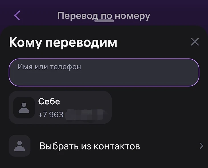 Выберите способ перевода – «Себе по номеру телефона» (средства пойдут на карту, привязанную к этому номеру).