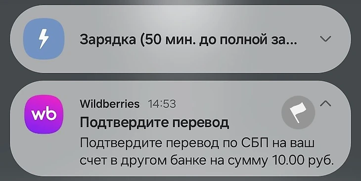 Перевод будет обработан через СБП. Если у вас подключено приложение «Вайлдберриз Банк», потребуется подтверждение операции. Если у вас настроен перевод без подтверждения, то деньги поступят сразу.