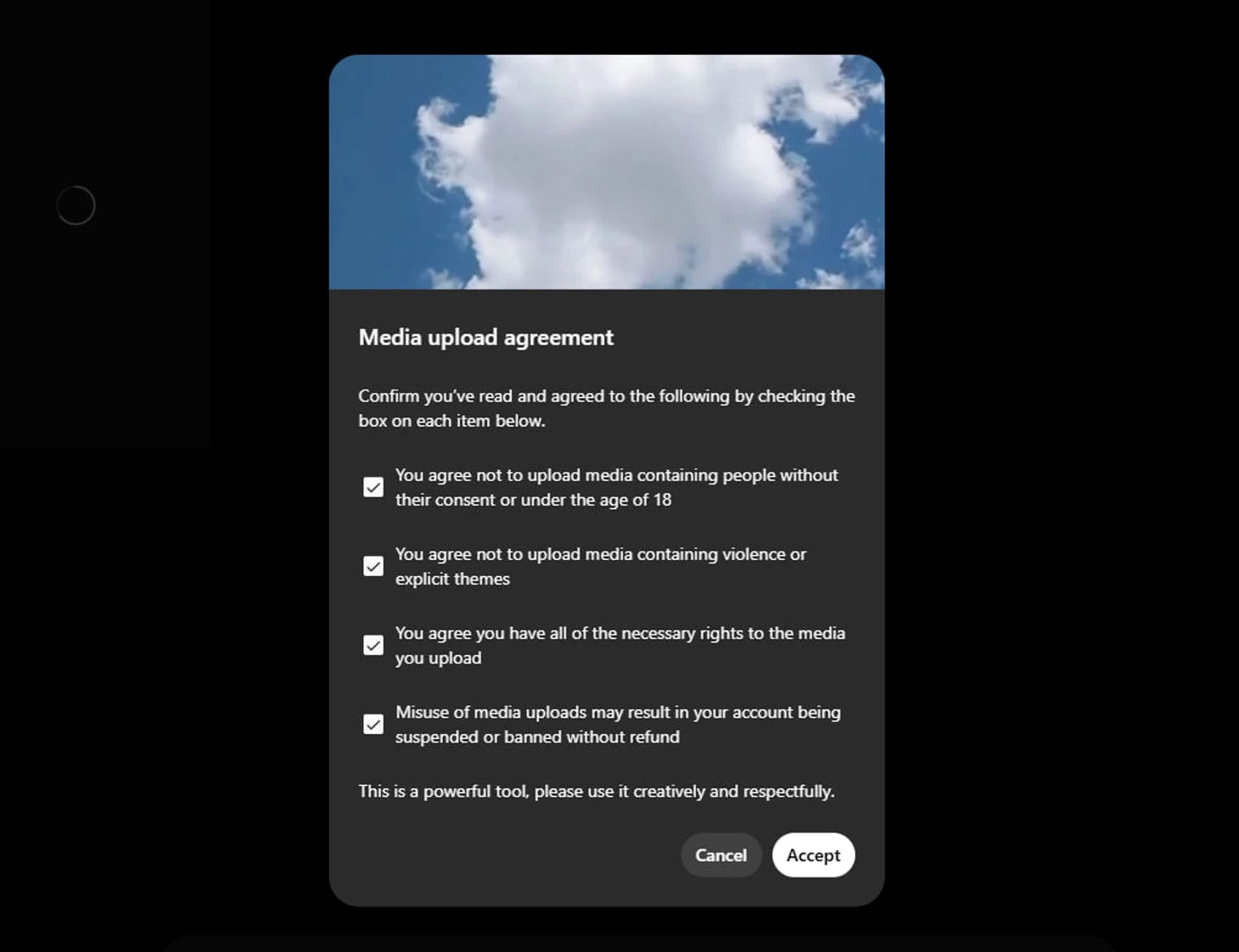 Для создания видео с камео просто выберите 1 из аватаров, которые появляются над диалоговым окном, когда вы пишете промпт.