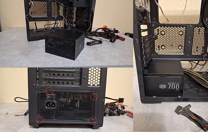 Установите блок питания – для этого достаточно закрутить 3 или 4 винта (в зависимости от корпуса) на задней стенке компьютера.