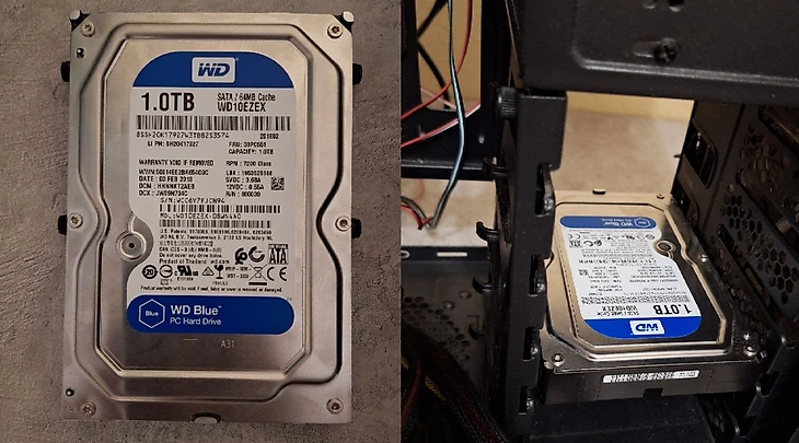 Подключите питание к HDD и SATA SSD, а также SATA-кабель к накопителю и материнской плате.