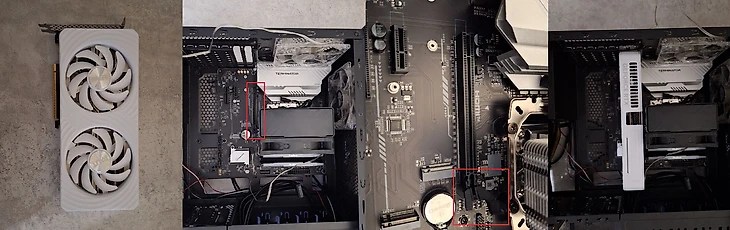 Установите видеокарту. Для этого откройте защелку на слоте PCIe, снимите соответствующие заглушки на корпусе и вставьте туда видеокарту до характерного щелчка.