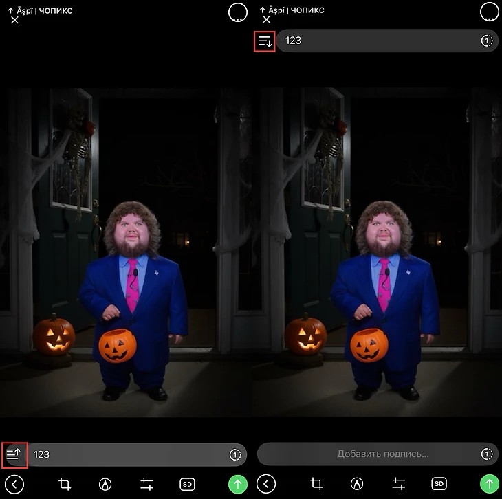 Нажмите на нее, и подпись сразу перенесется наверх, превратившись в отдельное сообщение.