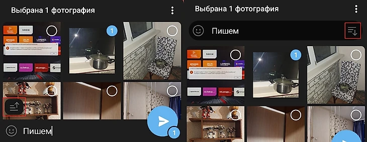 Откройте галерею прямо в чате и прикрепите нужное фото.