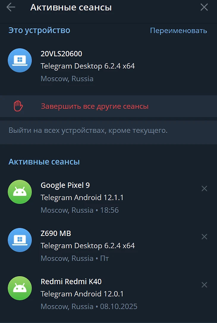 Авторизуйтесь в Telegram на нескольких устройствах