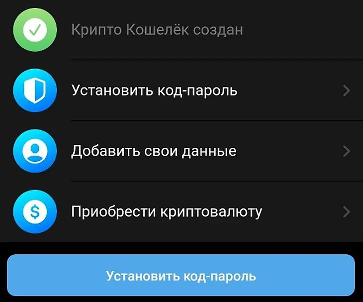 Первым делом необходимо обеспечить безопасность ваших средств. Нажмите на кнопку «Установить код-пароль».