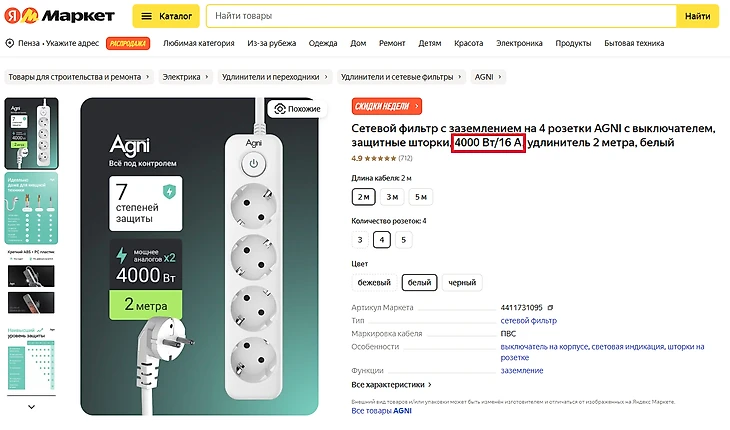 Характеристики сетевых фильтров и удлинителей