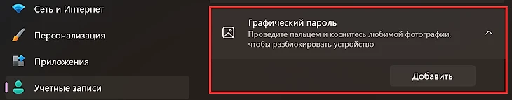 Выберите в боковом меню «Варианты входа», раскройте пункт «Пароль» и нажмите «Добавить».