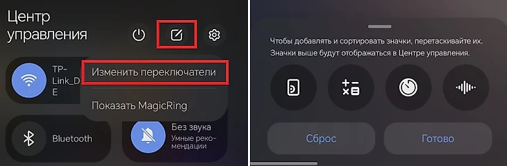 Если кнопка отсутствует, перейдите в настройки виджетов шторки, нажав на кнопку редактирования, и выберите «Изменить переключатели». В нижней части экрана настроек находятся неиспользуемые в центре управления инструменты. Просто перетащите нужный элемент на удобное место.
