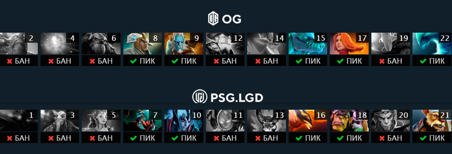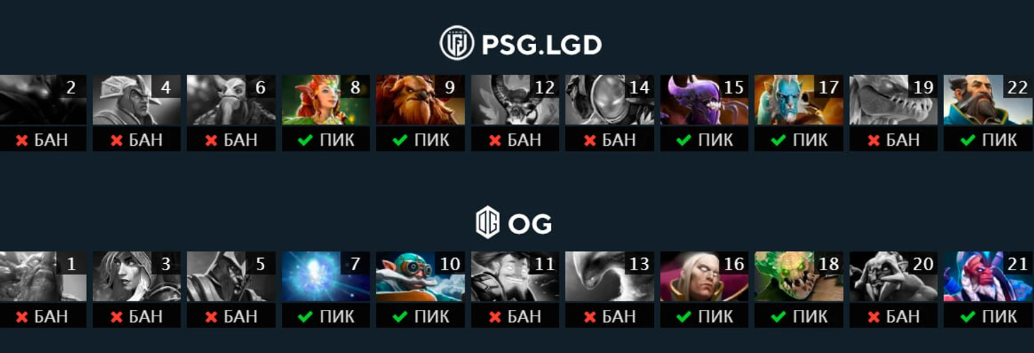 Теперь LGD стали банить Спектру еще в первой стадии. Действительно, герой великолепно подходит под стиль OG и слишком силен в руках Аны. В первой игре его убили семь (!) раз до 20-й минуты, а он все равно вернулся в игру.