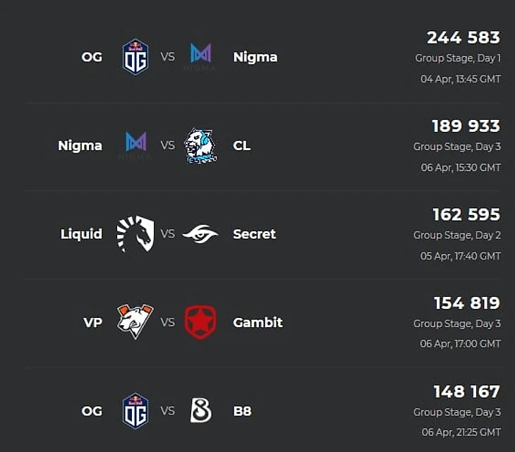 Очень приличные цифры для онлайн-турнира. Но ESL Pro League Season 11 по CS:GO в два раза превысил показатели Доты.