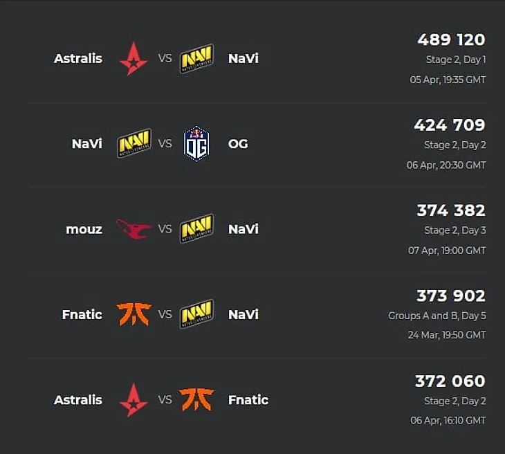 Почти 490 тысяч зрителей на матче AstralisNAVI!