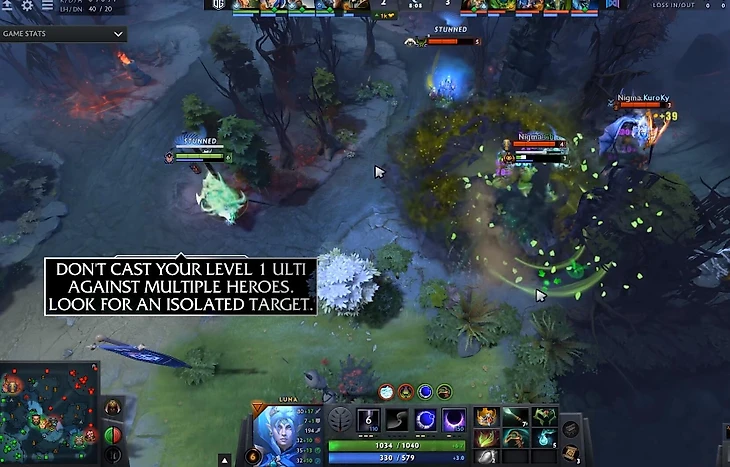 Ключ к победе на такой Луне – принимать участие только в перспективных драках, не оказываясь в их центре. Гораздо эффективнее наносить урон с дистанции через Lucent Beam, чем влететь в эпицентр драки с Eclipse и погибнуть сразу после ульта.