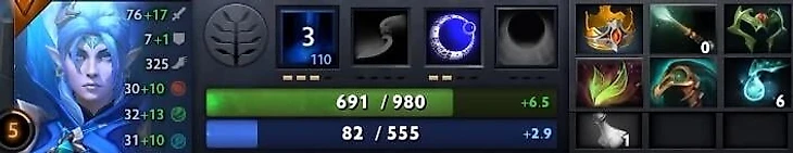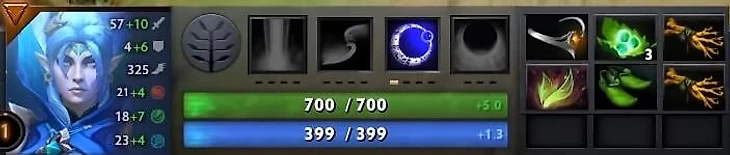 Стартовый закуп Сумаила достаточно стандартен. Он не берет много регена, ведь он не поможет ему хорошо отстоять плохую линию. Даже с множеством регена его будут либо убивать, либо отгонять от крипов. Поэтому задача Луны в начале игры – найти хорошую линию.