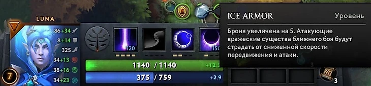 Также не забывайте, что пассивка Луны дает 30% дополнительной базовой брони всем героям в радиусе 1200, что сильно повышает выживаемость команды. Особенно круто это помогает героям-силовикам, которым брони не хватает.