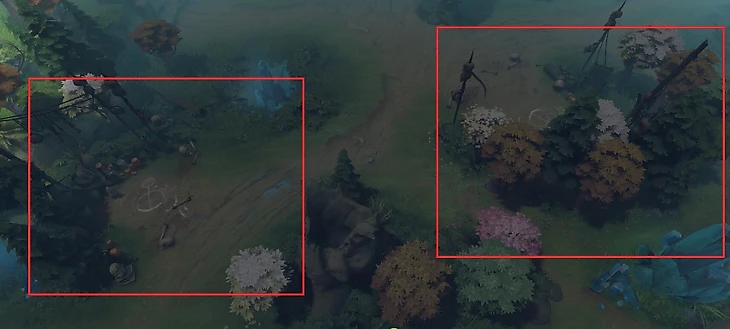 Следующее действие – блок двух лагерей нейтралов. Так противник не сможет отвести крипов и перетянуть линию на свою половину.