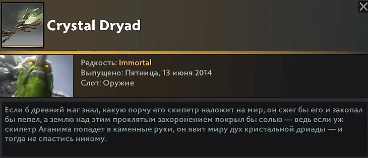 Когда-то Скипетр Аганима давал Тини нынешнюю способность Tree Grab. Еще с тех времен в описании «Crystal Dryad», одной из моделей дерева для героя, сохранилась отсылка к Скипетру.