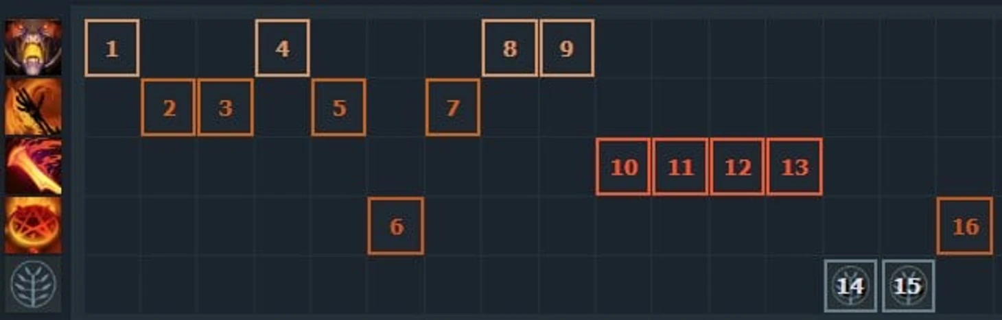 Раскачка: Максим пассивку, а после добиваем Aphotic Shield. Под первый уровень ульта лучше всегда держать свободным один скиллпоинт.