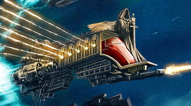 Один из наборов по вселенной Warhammer. Хоть и создавался на базе модели вертолета дворфов из обычной Вахи, но больше напоминает космические корабли Империума из Warhammer 40000, особенно пушкой в нижней части носа.