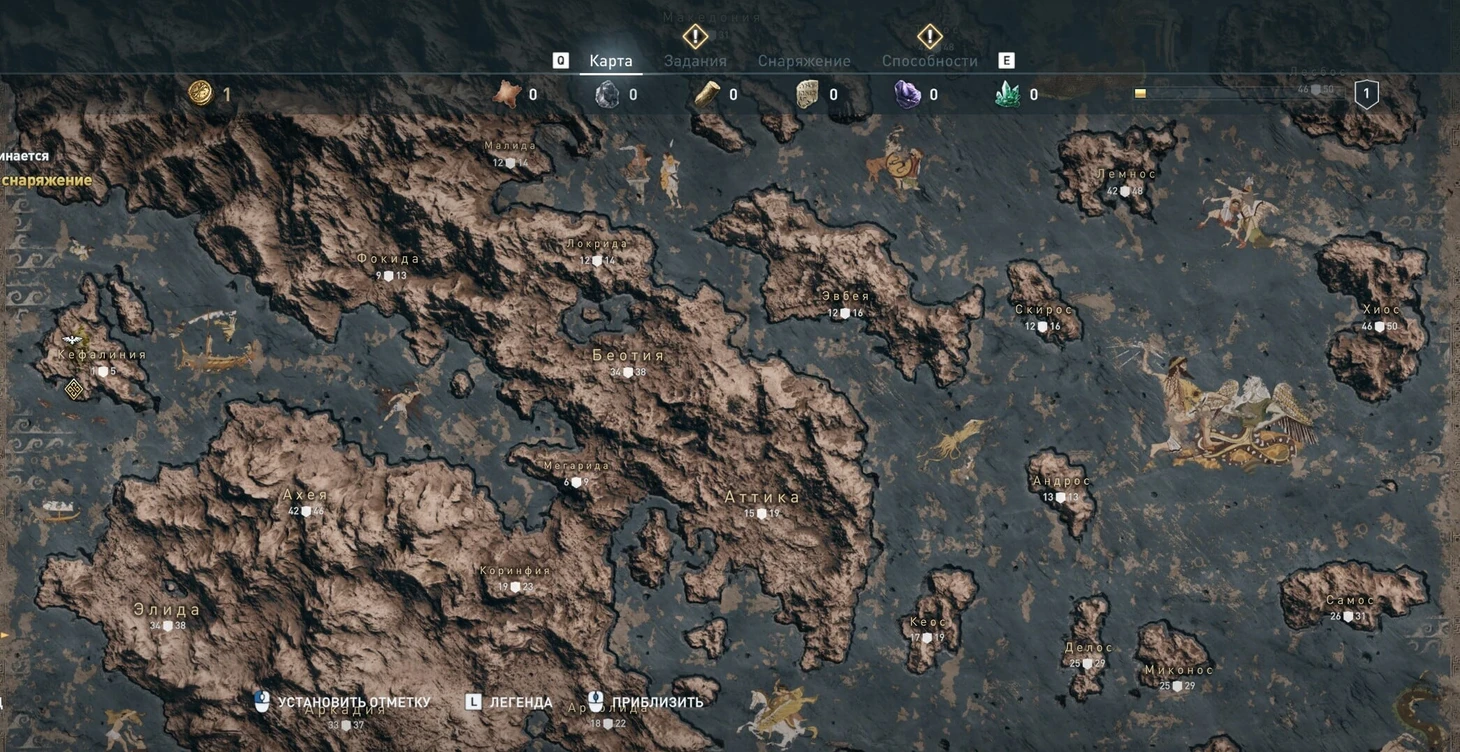 В Assasin’s Creed Odyssey карта поделена на множество областей, каждая со своим уровнем. Да, в любое место на карте возможно зайти еще в самом начале игры, даже в самую высокоуровневую локацию, но лучше этого не делать. В крайнем же случае противники внутри локации эффективно (за один удар) намекнут, что лезть сюда пока не стоит.