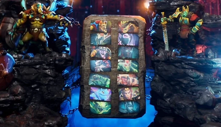 4. Высветленный список банов. На экране преобладают темные тона – скалы, таймеры, цитадель на фоне. И в центре находится доска с банами, на которой преобладают светлые тона, а иконки героев и вовсе выглядят неестественно белыми на фоне общего стиля: